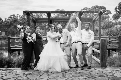 After the ceremony, the bridal party hopped into golf buggies (a fun and unique touch!) and cruised down to the lake for their formal portraits. This part of the day was a highlight—there’s something so special about blending elegance with a bit of adventure, and Eynesbury's natural beauty gave us the perfect backdrop. As a Melbourne wedding photographer, I’m always chasing light and candid emotion, and this location delivered both in abundance.