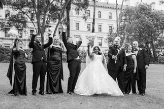 After the ceremony, we headed into the city for bridal party portraits at Treasury Gardens — a classic Melbourne gem. With tree-lined paths, open lawns, and city architecture peeking through the background, it’s the ideal blend of nature and urban elegance.